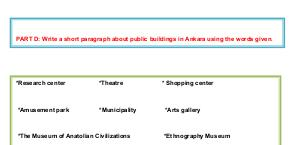 PART D: Write a short paragraph about public buildings in Ankara using the words given.