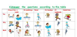 2)Mark does karate once a week.