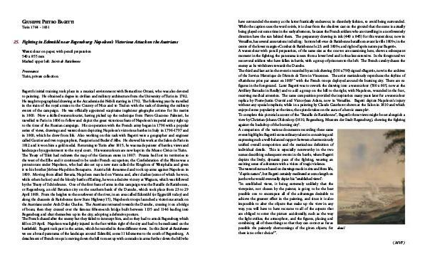centre of the lower margin «Combat de Ratisbonne le 23. avril 1809»; and right «d’après nature par Bagetti».