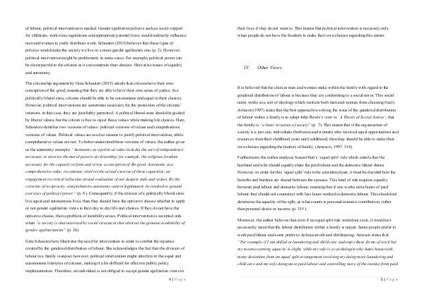 work paid labour and some prefer to do housework and childrearing. Arneson states that: