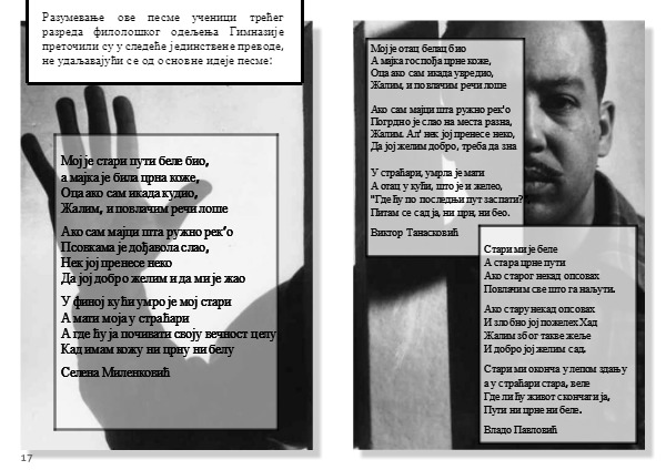 Разумевање ове песме ученици трећег разреда филолошког одељења Гимназије преточили су у следеће јединствене преводе, не удаљавајући се од основне идеје песме: