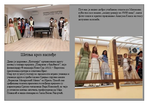 Данас је удружење „Еустахија“ организовало другу шетњу у оквиру пројекта „Повратак у будућност“, које финансирају Фондација Нови Сад 2021 – Европска престоница културе и општина Ириг.