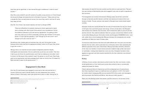 homes or hotels. The sex workers interviewed in Shanghai were mainly street-based