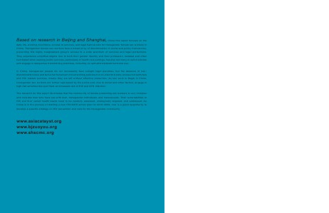 China. Transgender female sex workers face a broad array of discrimination in social and policy frameworks,