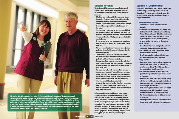 and improved patient and staff satisfaction . We do not restrict or deny visitation privileges on the basis