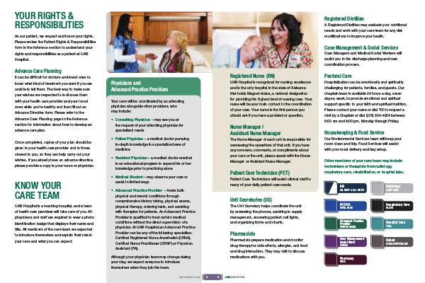 Although your physician team may change during your stay, we expect everyone to introduce themselves when they join the team. uabmedicine. org 3
