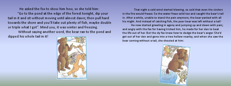 the life out of her. But the sly fox knew how to dodge the bear’s anger. She’d