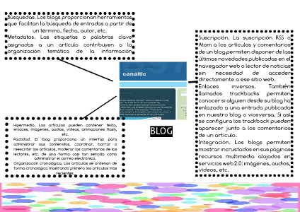 Integración. Los blogs permiten mostrar incrustados en sus páginas recursos multimedia alojados en servicios web 2.0: imágenes, audios, vídeos, etc.