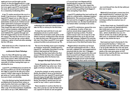 Race 9 of the CPR Sprint Cup series marked the 2nd and final super speedway race of the season. After Charlotte was canned, Talladega moved into the catbirds seat with 10 drivers having their eyes on winning the race.