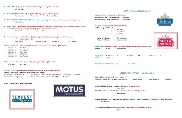 10. Nearest the Pin - Sponsored by Glenbrynth, each winner receiving a Bottle of Glenbrynth