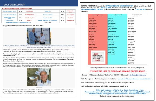 Allan Hill Trophy 28 Jun Kloof C.C. Nomads Natal Stroke Play Championship 01 Jul Mt Edgecombe