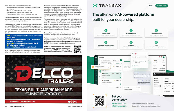 frustrating cycle, and one that NATDA is here to help with. Recognizing that awareness alone wasn’ t enough, NATDA teamed up with Dealer Academy— the industry’ s leading online training and coaching platform— to create a solution. Using insights from the mystery shops, Dealer Academy developed a new training program: Lead Handling Mastery, designed specifically for trailer dealerships.