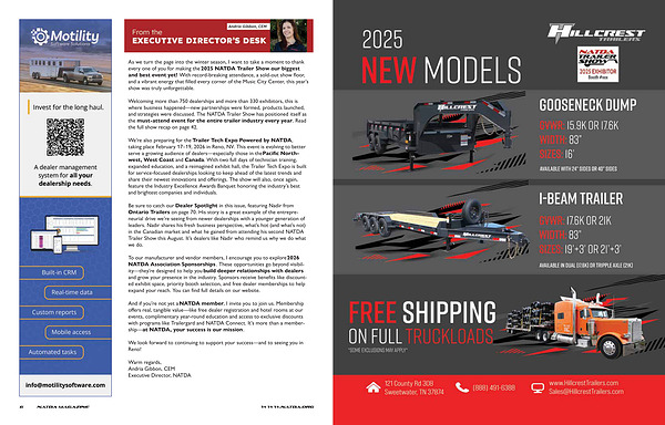 And if you’ re not yet a NATDA member, I invite you to join us. Membership offers real, tangible value— like free dealer registration and hotel rooms at our events, complimentary year-round education and access to exclusive discounts with programs like Trailergard and NATDA Connect. It’ s more than a membership— at NATDA, your success is our mission.