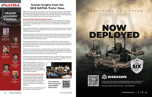 WE WANT TO HEAR FROM YOU! The Dealer Advisory Council is here to advise on issues that are most important to NATDA Dealer members. Whether it’ s inventory management, hiring, staff, or operations, this group of trailer professionals is ready to share their insights and experience.