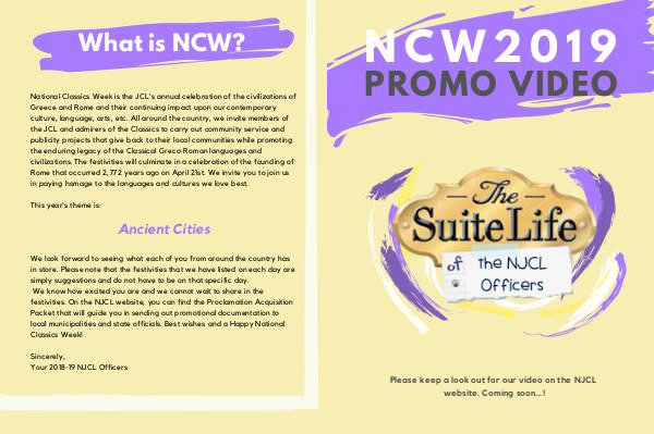 NCW2019 PROMO VIDEO Please keep a look out for our video on the NJCL website. Coming soon...!