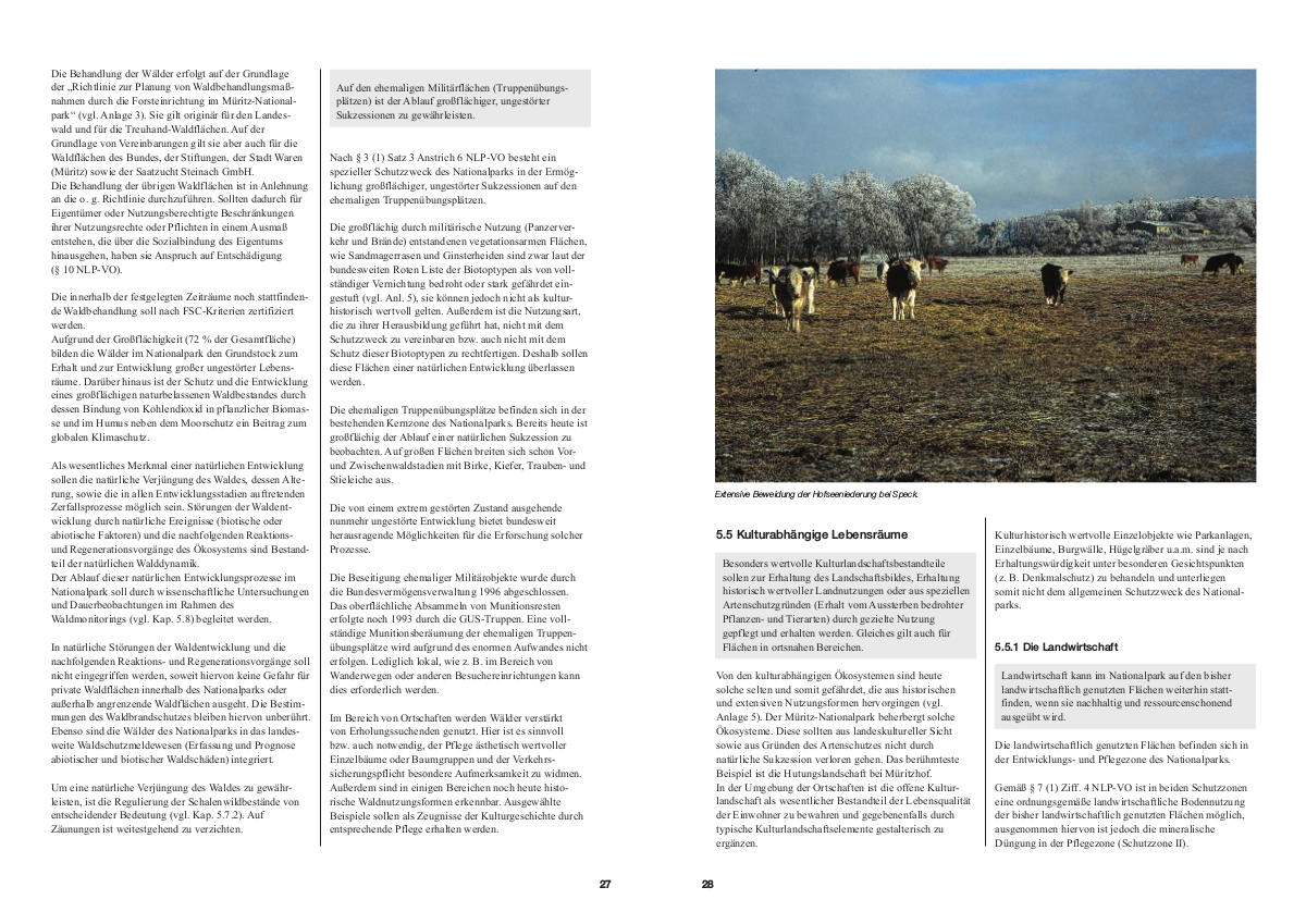 Das Landschaftsbild im Müritz-Nationalpark soll, entsprechend dem allgemeinen Schutzzweck, grundsätzlich einer freien vom Menschen unbeeinflussten Naturentwicklung unterliegen(§ 3( 1) Satz 2 NLP-VO).