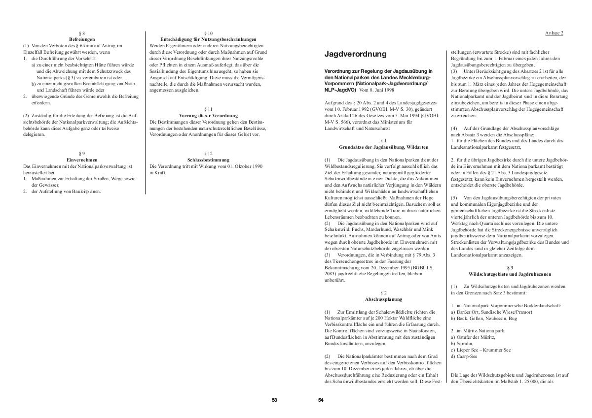 Anlagen zu dieser Verordnung veröffentlicht sind, durch eine fettgedruckt schwarze Linie gekennzeichnet. Die Grenzen der Wildschutzgebiete und Jagdruhezonen sind auf den Abgrenzungskarten im Maßstab 1: 10 000 in gleicher Weise dargestellt. Die Karten sind Bestandteil dieser Verordnung und werden beim Ministerium für Landwirtschaft und Naturschutz, Paulshöher Weg 1, 19061 Schwerin, archivmäßig verwahrt. Ausfertigungen der Karten befinden sich