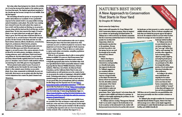 The astounding rebound in species on our property was neither extraordinary nor accidental . It was a predictable response by the natural world to our purposefully restoring nature ’ s foundation : native plants . The moths I am counting have returned because the native plants they require are here as well . And those plants are thriving on our property because , along with the wind and the local blue jays , we have planted them . We also have removed the tangle of invasive plants so our native plants have enough space , light , and water to grow . The birds and other vertebrates that live on our land can do so , not just because of the moths our plants produce , but also because of the fruits and nuts our oaks , black walnuts , hickories , filberts , blackberries , serviceberries , dogwoods , persimmons , black cherries , pawpaws , chokeberries , viburnums , and black gums make each year . Winter birds like juncos and white-throated sparrows migrate to our yard because of the copious amounts of seeds produced by our native grasses , sweetgums , sycamores , evening primroses , asters , wild lettuce , black-eyed Susan ’ s , and goldenrods . Red-shouldered hawks , Cooper ’ s hawks , and sharp-shinned hawks regularly hunt here because their prey is so abundant . And it is hard to walk anywhere without encountering the cutest little gray tree frogs imaginable .