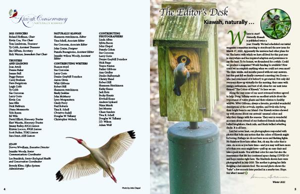 NATURALLY KIAWAH Shauneen Hutchinson , Editor Tina Schell , Associate Editor Sue Corcoran , Associate Editor John Cruise , Designer Pamela Buongiorno , Assistant Editor