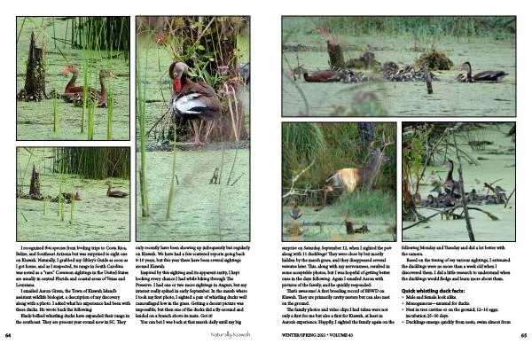 I emailed Aaron Given , the Town of Kiawah Island ’ s assistant wildlife biologist , a description of my discovery along with a photo . I asked what his experience had been with these ducks . He wrote back the following :