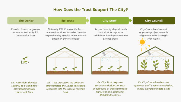 Naturally PSL Community Trust receive donations, transfer them to respective city special revenue funds based on donor’ s choice |