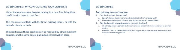 Lateral ’ s former clients : is prior work related to the firm ’ s ongoing work ? |