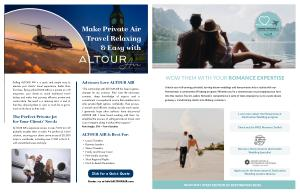 Selling ALTOUR AIR is a quick and simple way to elevate your clients’ travel experience. Better than first class, flying with ALTOUR AIR on a private aircraft empowers your clients to avoid traditional travel delays and make their journeys efficient, private and comfortable. The result is a relaxing start or end of their trip, allowing them to have as much fun or get as much work done as they wish.