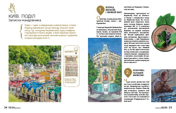 Рекомендуємо прогулятися по Верхньому Валу до Житнього Ринку і повернутися назад по Нижньому Валу. На сьогоднішній день збереглася лише мала частина будівель першої половини ХІХ ст. В основному тут розташовані двоповерхові будинки, на перших поверхах яких знаходяться магазинчики. Фасади прикрашені дрібним ліпленням, фронтонами і пілястрами, а між будинками можна розгледіти крихітні дворики. Місцем « must visit » на цій точці маршруту має стати кафе « Call me Cacao », вул. Нижній Вал, 35. Тут Вас пригостять какао на будь-який смак: лавандовий, з медом і перцем, з маршмеллоу, і, звичайно, класичний. Ми радимо Вам взяти з собою стаканчик побільше, адже попереду ще багато цікавого!