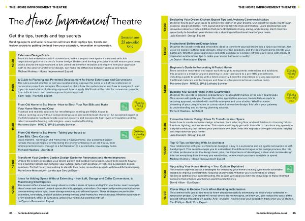 Clever Ways to Reduce Costs When Building an Extension This seminar tells you all you need to know about successfully estimating the cost of your extension or renovation project. Our expert will reveal where the money goes, and how you can reduce the costs of the project without impacting on quality. And- crucially- how to keep your budget on track once you’ ve started. Tim Phillips- Build Cost Expert homebuildingshow. co. uk • 35