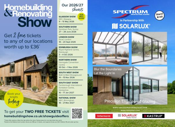 To get your TWO FREE TICKETS * visit homebuildingshow. co. uk / showguideoffers
