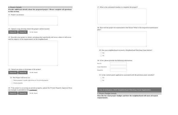 4 . Project Details Provide additional details about the proposed project . Please complete all questions in this section .