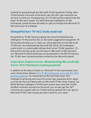 are here to assist you. Dumpspartner.com 70-462 training material have the