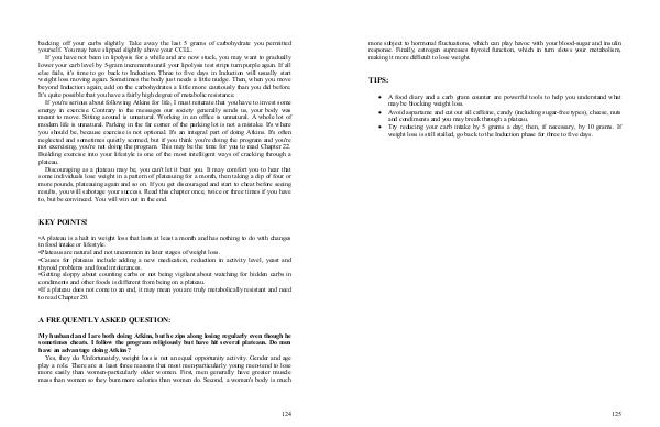 • Try reducing your carb intake by 5 grams a day; then, if necessary, by 10 grams. If weight loss is still stalled, go back to the Induction phase for three to five days.