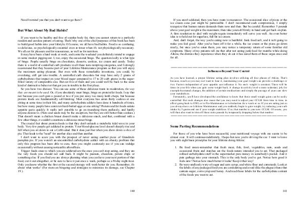 If you want to be healthy and free of surplus body fat, then you cannot return to a perfectly random and careless pattern of eating. That ' s why one of the chief purposes of this book has been to build good habits into your lifestyle. Of course, we all have bad habits. Food is so confusing, so delicious, so psychologically essential even at times when it ' s not physiologically necessary. We all eat for pleasure and for reassurance, as well as for nutrition.