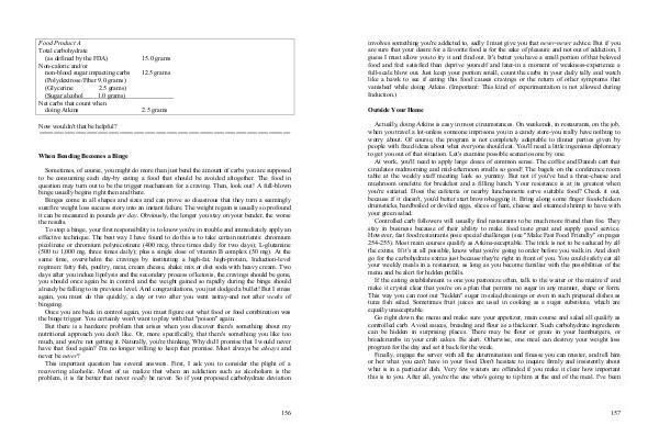 involves something you ' re addicted to, sadly I must give you that never-never advice. But if you are sure that your desire for a favorite food is for the sake of pleasure and not out of addiction, I guess I must allow you to try it and find out. It ' s better you have a small portion of that beloved food and feel satisfied than deprive yourself and later-in a moment of weakness-experience a full-scale blow out. Just keep your portion small, count the carbs in your daily tally and watch like a hawk to see if eating this food causes cravings or the return of other symptoms that vanished while doing Atkins.( Important: This kind of experimentation is not allowed during Induction.)