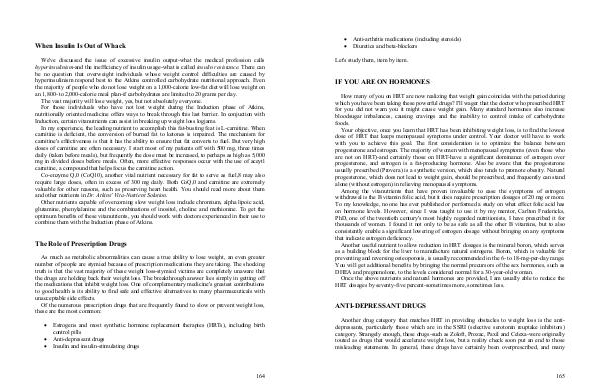 Your objective, once you learn that HRT has been inhibiting weight loss, is to find the lowest dose of HRT that keeps menopausal symptoms under control. Your doctor will have to work with you to achieve this goal. The first consideration is to optimize the balance between progesterone and estrogen. The majority of women with menopausal symptoms( even those who are not on HRT)-and certainly those on HRT-have a significant dominance of estrogen over progesterone, and estrogen is a fat-producing hormone. Also be aware that the progesterone usually prescribed( Provera) is a synthetic version, which also tends to promote obesity. Natural progesterone, which does not lead to weight gain, should be prescribed, and frequently can stand alone( without estrogen) in relieving menopausal symptoms.