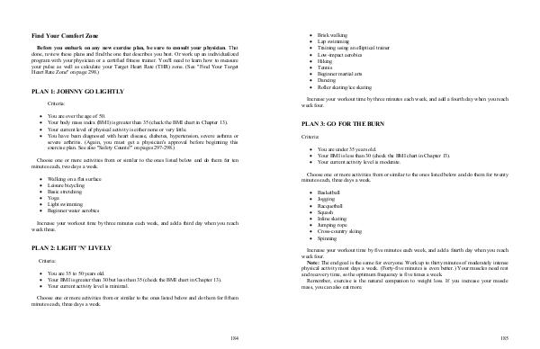 • Your BMI is less than 30( check the BMI chart in Chapter 13).