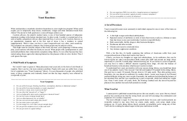 Nor would I want to ignore it. Many physicians treat yeast only in the form of oral thrush or vaginitis. But it can be a far more extensive problem. People with yeast can suffer from a long list of complaints( see " Yeast Symptoms " below). I ' ve seen thousands of people who exhibited many of these symptoms and eventually found out that the large majority were affected by overgrowth of yeast.