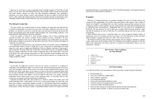 My final bit of advice is that you take yeast seriously. Like any allergy or infectious overload, it puts a great strain on the immune system. If it undercuts your weight loss program, it will also impair your relationship with Atkins, and that is certainly one relationship I hope to see you maintain for a lifetime.