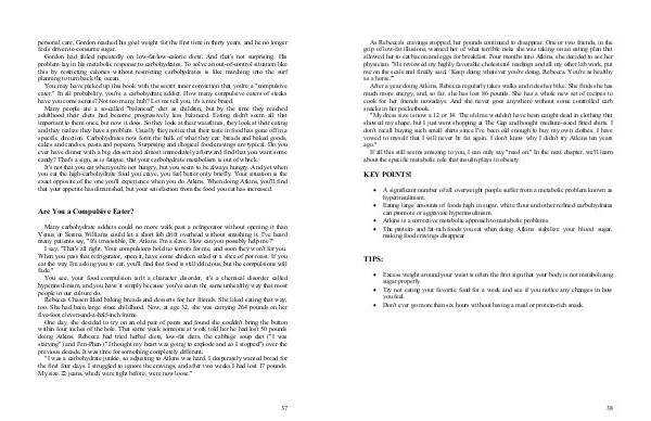 You may have picked up this book with the secret inner conviction that you ' re a " compulsive eater." In all probability, you ' re a carbohydrate addict. How many compulsive eaters of steaks have you come across? Not too many, huh? Let me tell you, it ' s a rare breed.