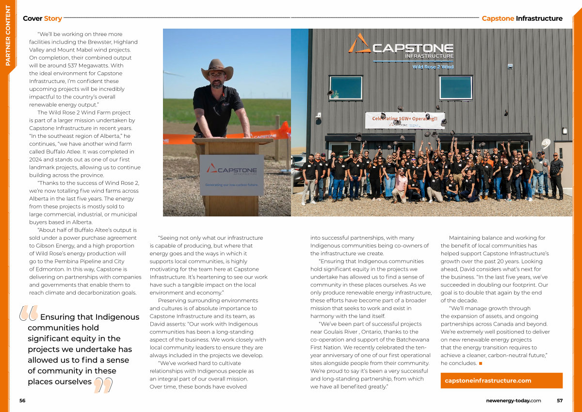“ We’ ll manage growth through the expansion of assets, and ongoing partnerships across Canada and beyond. We’ re extremely well positioned to deliver on new renewable energy projects that the energy transition requires to achieve a cleaner, carbon-neutral future,” he concludes. ■
