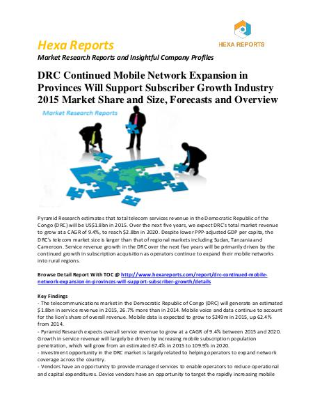 Browse Detail Report With TOC @ http://www.hexareports.com/report/drc-continued-mobilenetwork-expansion-in-provinces-will-support-subscriber-growth/details