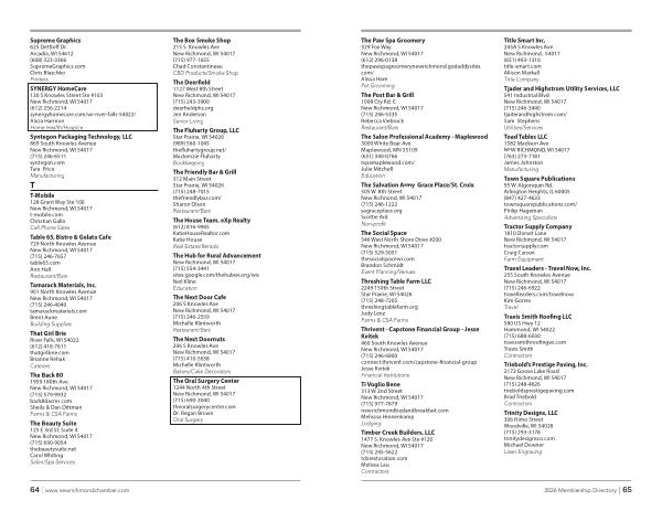 Ti Voglio Bene 313 W 2nd Street New Richmond, WI 54017( 715) 977-7879 newrichmondbedandbreakfast. com Melisssa Hinnenkamp Lodging