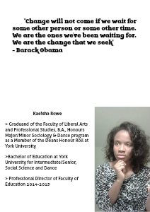 > Graduand of the Faculty of Liberal Arts and Professional Studies, B.A., Honours Major/Minor Sociology & Dance program as a Member of the Deans Honour Roll at York University