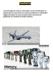 La tecnología tal como la conocemos es solo el principio, se espera que en unos años los robots y vehículos no tripulados hagan un avance no acia la destrucción, sino hacia el propósito de construir un mejor mañana.