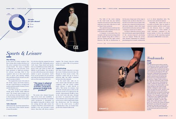 It is also here that the segment has most of its net sales ( 73 %). Trademarks such as Craft , Seger , Clique Retail and Speedo have an established position within the sports trade and Cutter & Buck and AHEAD at golf facilities . The products are also sold in the promo sales channel , mainly to sports associations . Craft ’ s focus on new products for associations and clubs has developed well and promo sales are thus expected to increase .