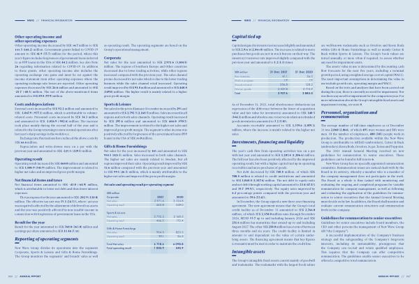 Net sales for the period January-December increased by 29 % and amounted to SEK 2,792.5 ( 2,168.5 ) million . Sales increased in all regions and in both sales channels . Operating result increased by SEK 295.6 million and amounted to SEK 466.0 ( 170.5 ) million . The improvement is related to the higher net sales and improved gross profit margin . The segment ' s other income was positively affected by forgiveness of the government loans ( PPP loans ) in the USA of SEK 35.0 million .