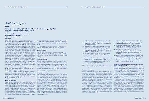 We have audited the annual accounts and consolidated accounts of New Wave Group AB( publ) for the financial year 2024-01-01- 2024-12-31. The annual accounts and consolidated accounts of the company are included on pages 59-147 in this document.