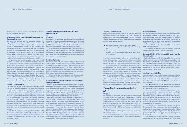 We conducted the audit in accordance with generally accepted auditing standards in Sweden. Our responsibilities under those standards are further described in the Auditor’ s Responsibilities section. We are independent of the parent company and the group in accordance with professional ethics for accountants in Sweden and have otherwise fulfilled our ethical responsibilities in accordance with these requirements.