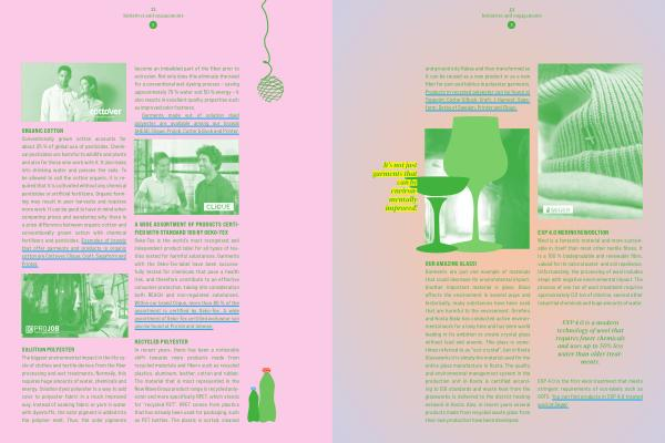 SOLUTION POLYESTER The biggest environmental impact in the life cycle of clothes and textile derives from the fiber processing and wet treatments . Normally , this requires huge amounts of water , chemicals and energy . Solution dyed polyester is a way to add color to polyester fabric in a much improved way . Instead of soaking fabric or yarn in water with dyestuffs , the color pigment is added into the polymer melt . Thus , the color pigments become an imbedded part of the fiber prior to extrusion . Not only does this eliminate the need for a conventional wet dyeing process – saving approximately 70 % water and 50 % energy – it also results in excellent quality properties such as improved color fastness .